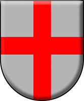 Cruz roja con los brazos iguales de color rojo. Muy empleada en heráldica y vexilología.